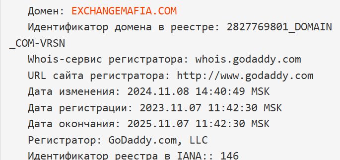 Официальный сайт ExchangeMafia размещен по адресу exchangemafia com. Визуально ресурс выглядит добротно и внушает доверие.Есть личный кабинет, история операций, а также возможность отслеживать доход от партнерской программы. Дата регистрации домена exchangemafia com совпадает с началом деятельности обменника и его появлением на мониторингах.