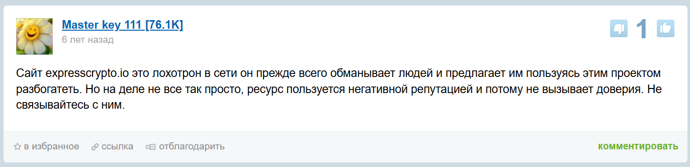 С учетом продолжительной деятельности криптокошелька в сети появилось много отзывов о ExpressCrypto. Многие пользователи сразу отметили, что это лохотрон. Они отметили, что с его помощью вряд ли можно разбогатеть. Клиенты заявляли, что платформа обманывает людей и пытается создать хорошую репутацию, но по факту не платит деньги.