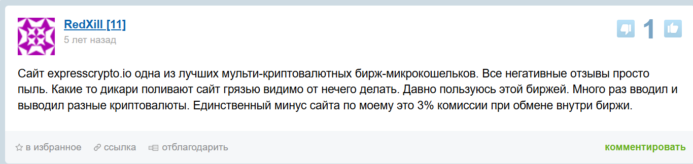 Встречались и позитивные отзывы. В них клиенты пытались показать криптокошелек с лучшей стороны. Они заявляли о возможности получения быстрого заработка. Единственным минусом указывалась комиссия в размере 3% от суммы.