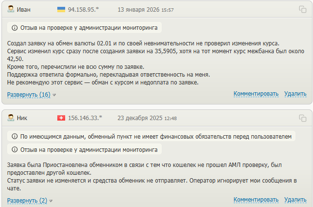 - отсутствие финансовых обязательств со стороны обменника при спорных ситуациях.