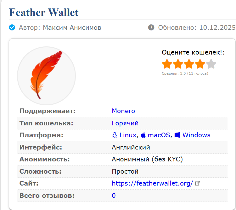 Анализ сервиса Feather Wallet и отзывы о кошельке