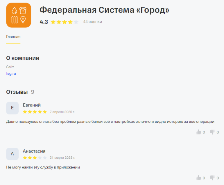 Отзывов о работе системы «Город» очень мало. На одной из площадок рейтинг ресурса составляет 4,3/5, что не особо много, хотя большая часть отзывов – положительные. Пользователи довольны удобством приложения и быстрой оплатой.