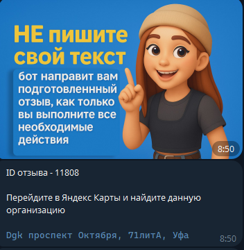 Механика выглядит так. Берешь задание. Получаешь название компании. Ждешь два часа. Бот присылает текст. Переписываешь его без единого изменения. Даже ошибки исправлять нельзя. Публикуешь отзыв. Делаешь скрин. Отправляешь на проверку.