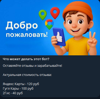 Заработок на отзывах в Feed Pay работает через телеграм-бот. Запустился 27 января 2025 года. Платят за отзывы на картах. Яндекс – 120 рублей, Google – 100 рублей, 2ГИС – 40 рублей. Работа идет через бот FeedPay work bot. Он выдает готовые тексты и четкие инструкции.