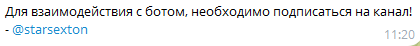 Для подключения возможности осуществления валютных транзакций с помощью «ФлэшСвэпБот» необходимо подписаться на канал Starsexton. В сообществе находится 7 561 участник.