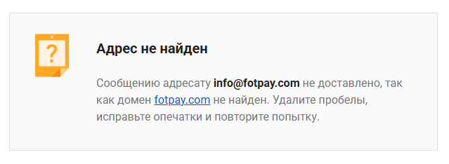Не отвечал никто и на наши запросы по адресу почты info@FotPay com. Точнее, нам даже не удалось отправить письмо на этот E-mail.