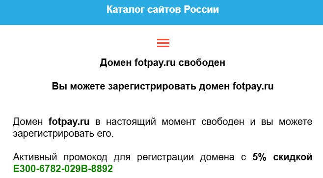 К слову, российский каталог сайтов предлагает к покупке подобный домен, но в зоне ru, а не com. Возможно, fotpay com прервал свою работу из-за ребрендинга. Но это лишь наши предположения, а не проверенные факты.