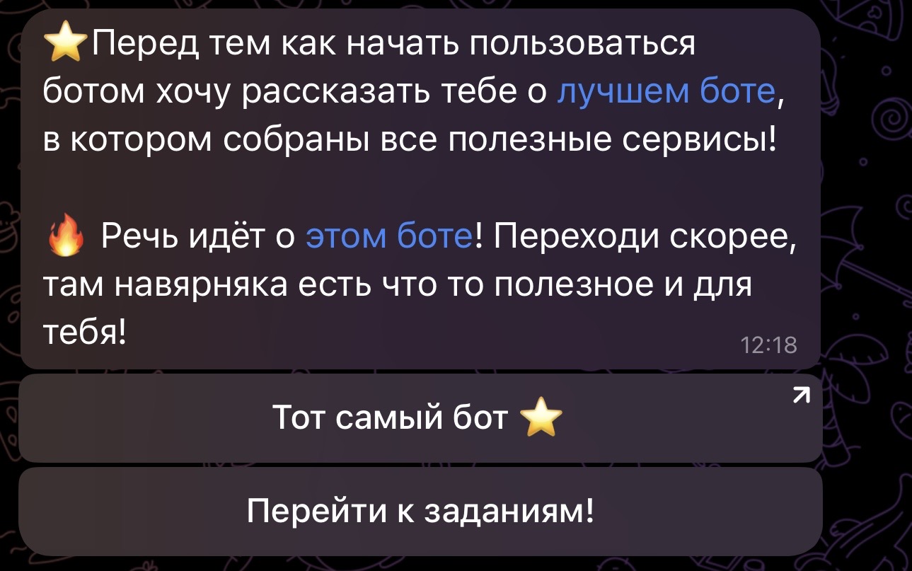И вот мы уже на пути к задачам, но тут разработчики решили, что сейчас пришло самое лучшее время для рекламы и выкатили автоматическое сообщение с продвижением какого-то непроверенного сервиса.