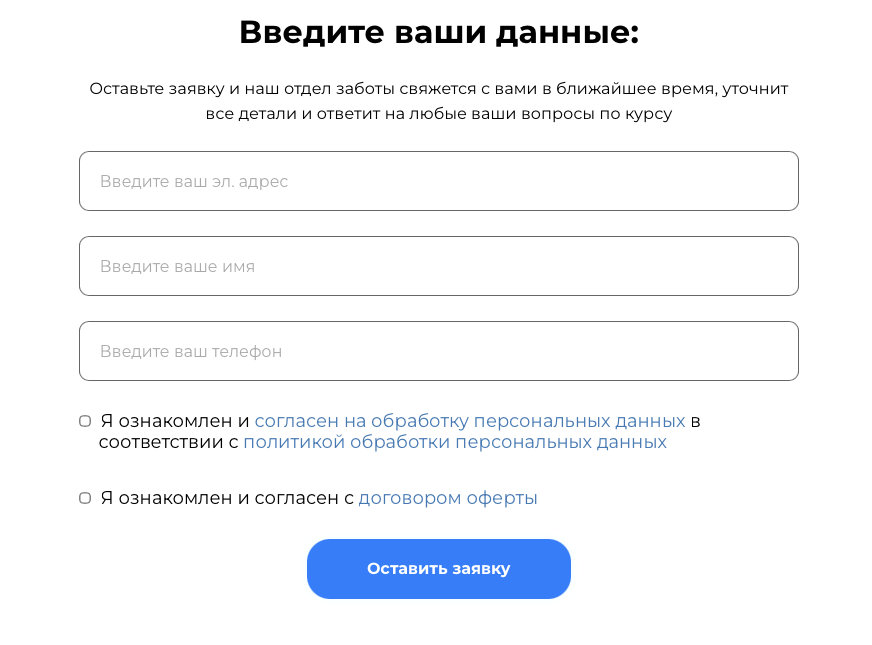 Чтобы оставить заявку на курс, нужно заполнить форму обратной связи на сайте Кораблева. В ней требуется указать в том числе телефонный номер. Поэтому нужно быть готовым к тому, что сам рассматриваемый специалист или его менеджер будет агрессивно навязывать свои услуги.