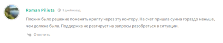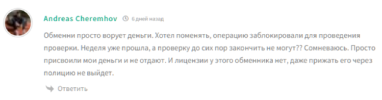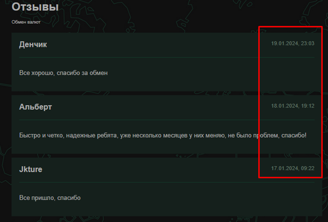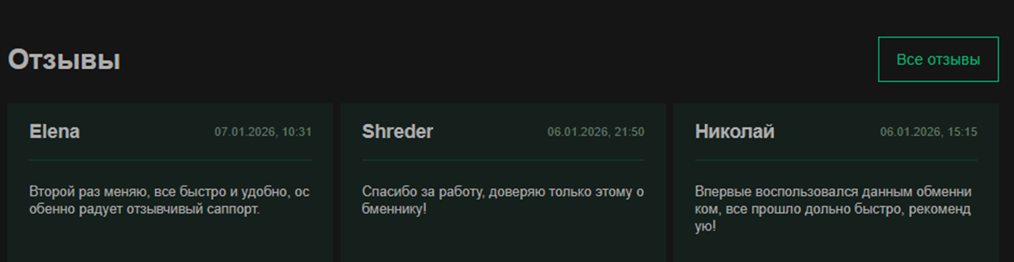 Но эти отзывы вызывают сомнение, так как они начинают публиковаться с января 2024 года. А сайт обменного пункта начал работу только в 2025.