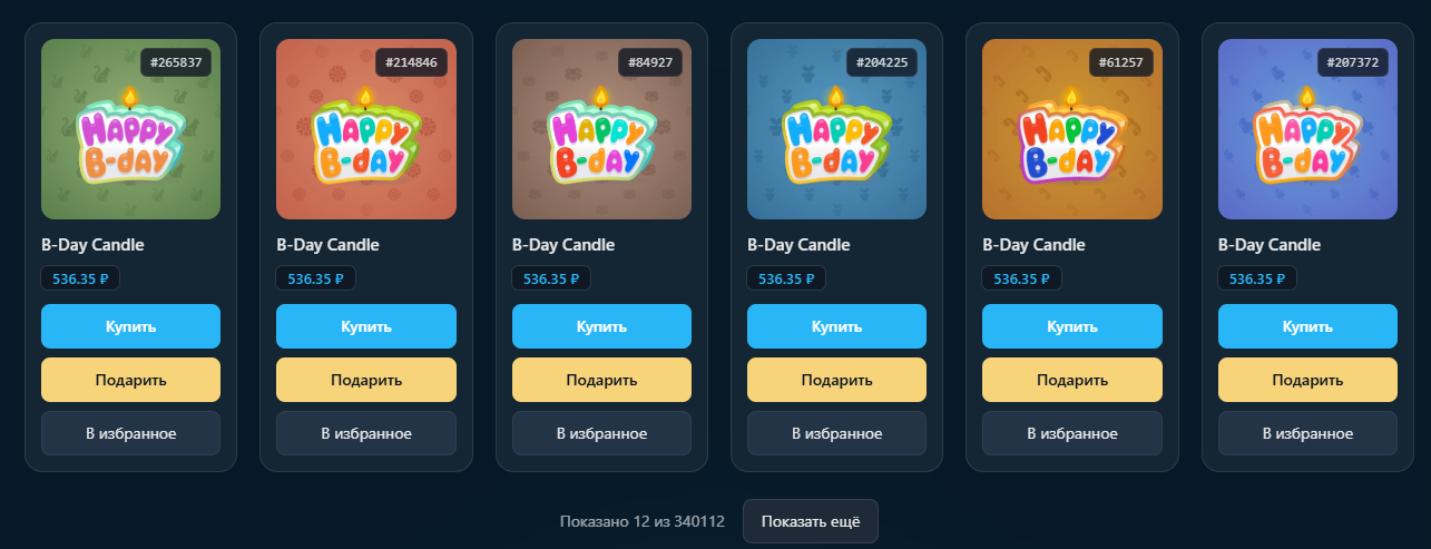 Оценить стоимость гифтов сложно, цены на них непостоянные, зависят от разных фаткоров. Отметим лишь, что на платформе предлагается более 340 тысяч гифтов с оплатой за рубли.