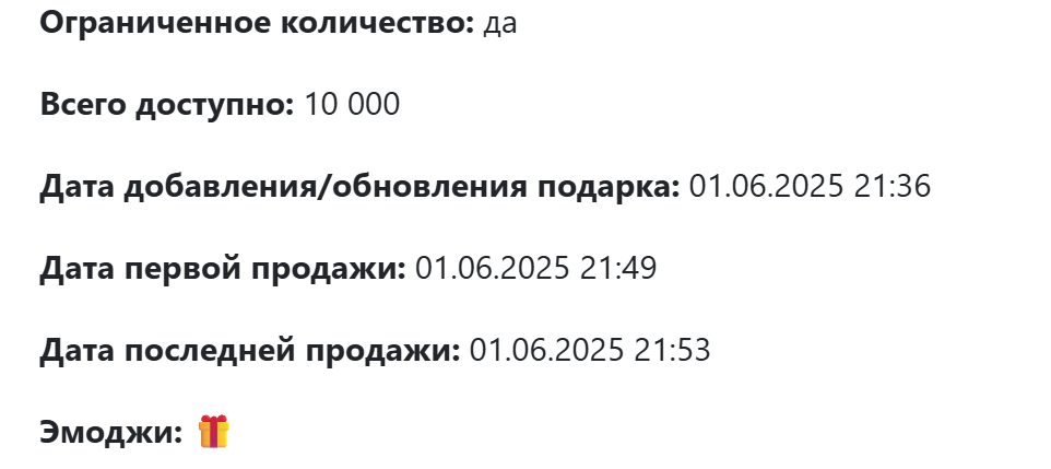 • ограниченная коллекция выпущена ко Дню защиты детей и распродана через ботов;
