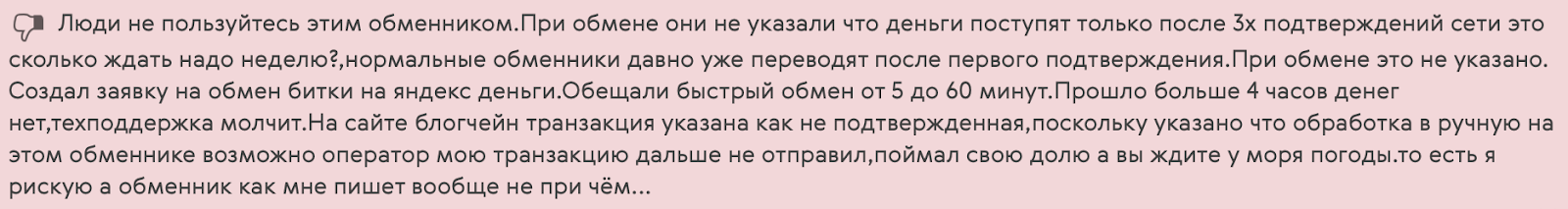 Особенность сервиса — ручная обработка заявок. То есть за каждой операцией следит оператор, а не автоматика. В периоды низкой загруженности обмен проходит быстро, но в часы пик возможны задержки.