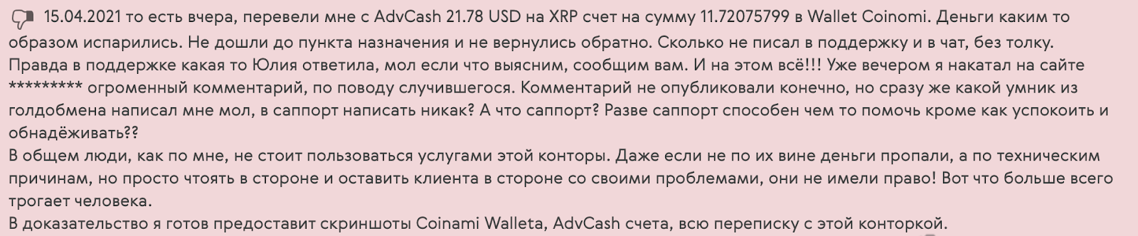 В целом впечатление складывается однозначное: конвертер «ГолдОбмен» не заслуживает доверия. Его представители банально не умеют решать спорные ситуации и не находят внятных ответов на вполне реальные жалобы.