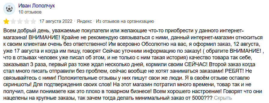 Подобных негативных комментариев о интернет-магазине довольно много. Жалобы клиентом всегда на то, что к покупателям относятся плохо и безответственно, а заказы не приходят.