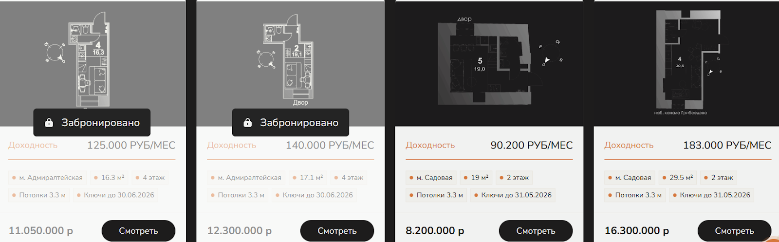 На сайте агентства недвижимости демонстрируют объекты, которые доступны для приобретения инвесторам. Большинство из них стоят 8–16 млн руб. Это довольно крупная сумма, чтобы доверять ее непроверенной организации.