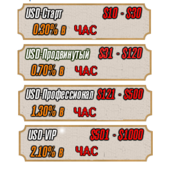 Компания предлагала 4 тарифных планов, самый простой – «USD Старт»: депозит – 10-30 долларов, прибыль – 0,30% в час. Самый выгодный – «USD VIP»: депозит – 501-1000 долларов, доход – 2,10% в час.Такие слишком выгодные условия, как правило, выдают мошенников. Никакой финансовый специалист или софт не может обеспечить такую доходность, да еще и стабильно.
