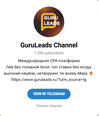 Телеграм-канал GuruLeads насчитывает около 1 350 подписчиков. Активность ведения канала сохраняется, публикуются новости о новых функциях платформы, акциях и обновлениях офферов. Тематика постов сугубо деловая, связанная с работой веб-мастеров.