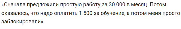 - Обещание высокой зарплаты человеку без опыта и навыков — верный признак аферистов.