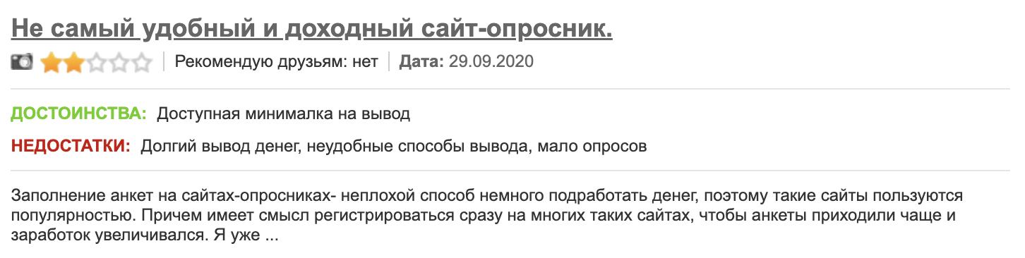 Большинство оплачиваемых опросов короткие и невысокооплачиваемые, по-настоящему дорогие анкеты привязаны к узким таргет-группам и встречаются редко. Поэтому суммарная доходность панели обычно ниже, чем у специализированных нишевых исследований, если не дополнять ее привлечением рефералов.