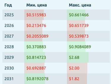 Прогноз токена RLC, который базируется на техническом анализе, показывает, что в ближайшие 5 лет цена монеты будет двигаться в диапазоне от 0,2 до 2,7 долларов.