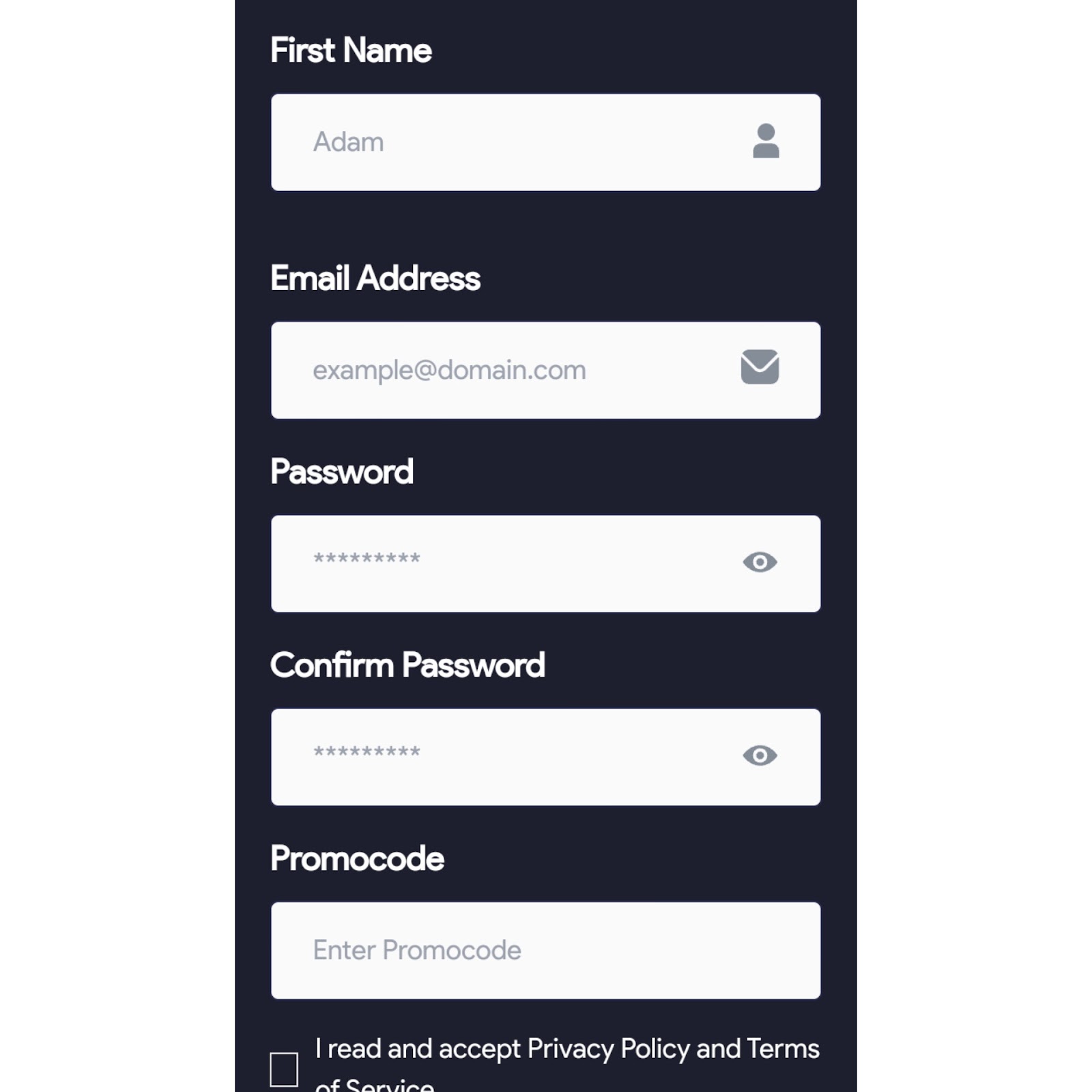 - заполнить строку с паролем, его повтором;