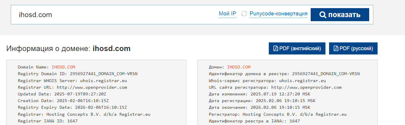 Сведения о проекте Ihosd