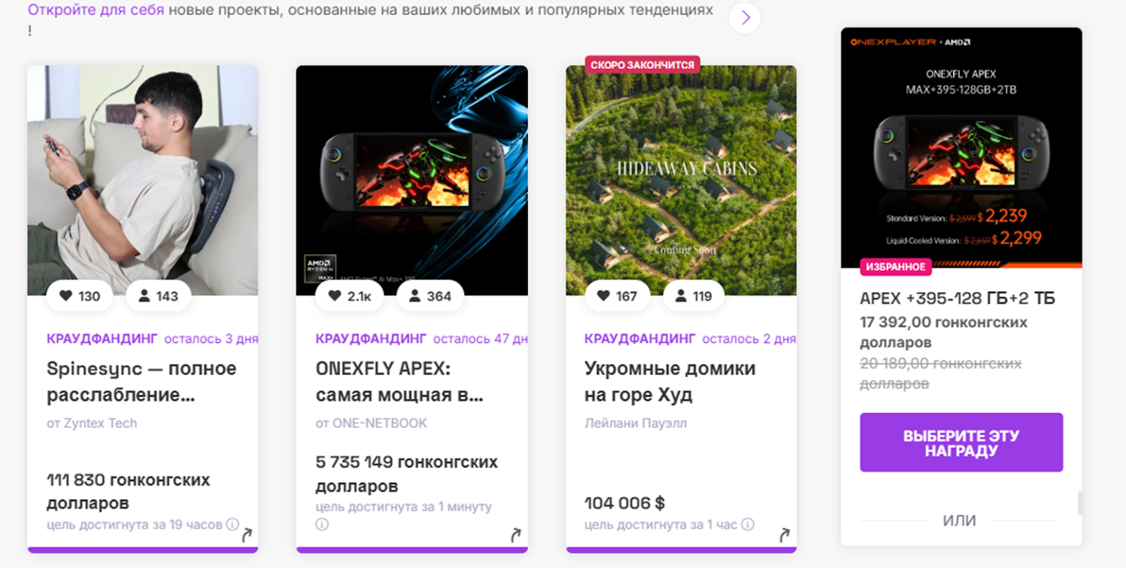 • большой выбор проектов, в которые можно вложить деньги – от социальных инициатив до современных гаджетов;