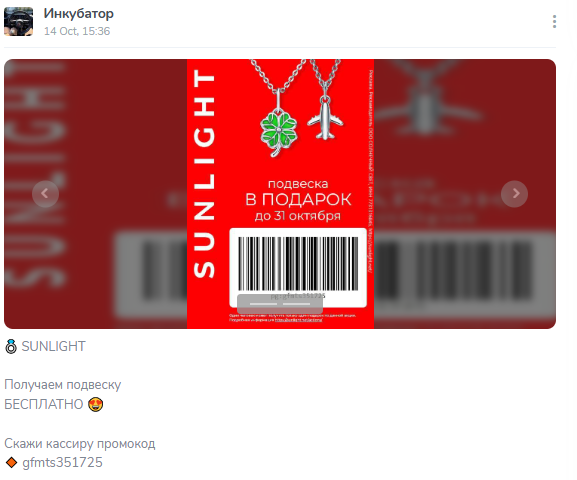 Публикации в Тг-канале «Инкубатор» делятся на два типа. Легальные промокоды от партнеров. И инструкции по мошенничеству.
