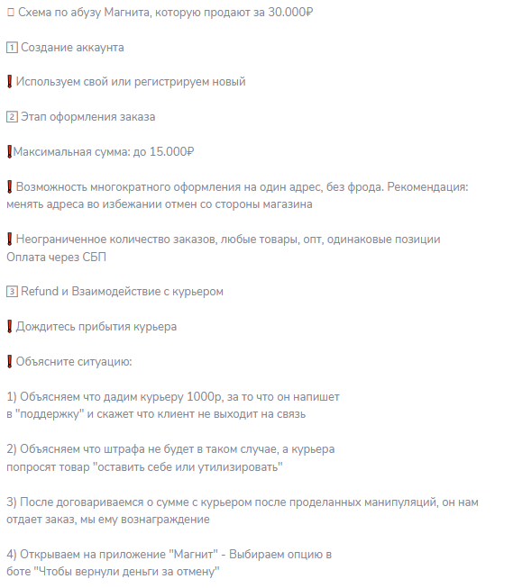Один пост учит врать службе доставки Магнита. Нужно договориться с курьером за 1000 рублей, чтобы он написал в поддержку про отсутствие клиента. Курьер получает деньги, товар остается у заказчика. Компания возвращает оплату.