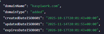 Проект использует бренд Kaspi. Крупная финтех компания из Казахстана. Но к kaspiwork com она отношения не имеет. Домен зарегистрирован 17 октября 2025 года. Сайту месяц.