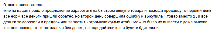 Схема выглядит привлекательно для тех, кто ищет быстрый заработок. Не нужны особые навыки или знания. Просто выкупаешь товары и получаешь деньги. Многие клюют на такие предложения. Особенно когда первые выплаты действительно приходят.