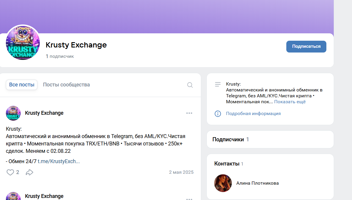 У группы ВК только 1 подписчик, и создана она в мае 2025 года.