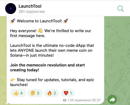 У владельцев платформы есть только один публичный аккаунт в соцсетях. Им является телеграмм-канал LaunchTool.