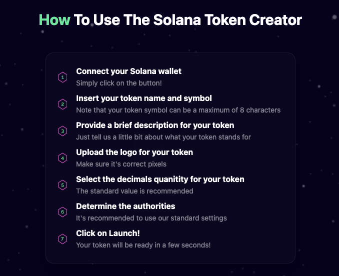 Инструкция относительно того, как работать с сервисом и запускать через него новые токены, размещена на официальном сайте проекта. Согласно ей, для создания монеты нужно подключить к платформе кошелек, заполнить форму и оплатить комиссию эмитента.
