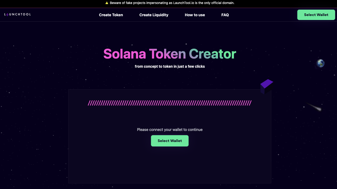 LaunchTool io — сервис для запуска монет, через который предлагают запускать новые монеты на блокчейне Solana. Работает с февраля 2025-го года.