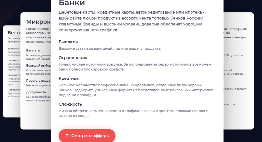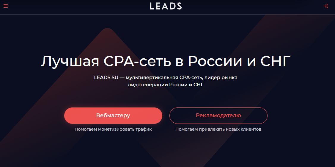 «Леадс су» позиционирует себя как крупнейшую партнерку России и СНГ. Сервис работает по модели CPA. Оплата за целевые действия пользователей. Вебмастер привлекает трафик на офферы рекламодателей, получает деньги за заявки, выдачи кредитов или регистрации.