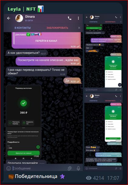 Положительных историй о реальном получении средств обнаружить не удалось. Встречаются единичные комментарии вроде «всё отлично, выплатили за минуту», но аккаунты авторов не существуют, а скрины находятся на самом канале Лейлы.На тематических форумах же рассказывают, что сразу после перевода «комиссии» администрация блокирует отправителя в личных сообщениях. Люди теряют доступ к диалогу и остаются без приза.