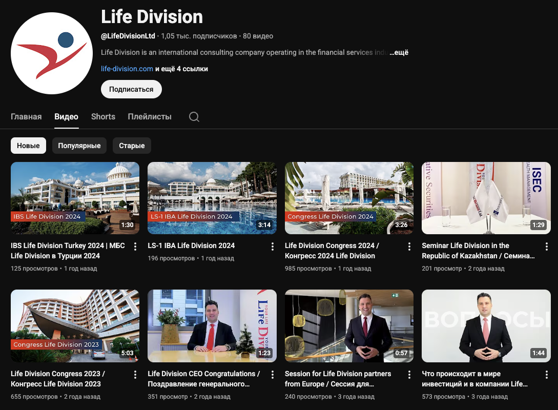 На YouTube-канал LiveDivisionLtd, на 15 декабря 2025-го, подписаны 1,05 тысяч зрителей. Последние ролики, которые были выложены на аккаунт более года назад, собирали в среднем по 100-500 воспроизведений.