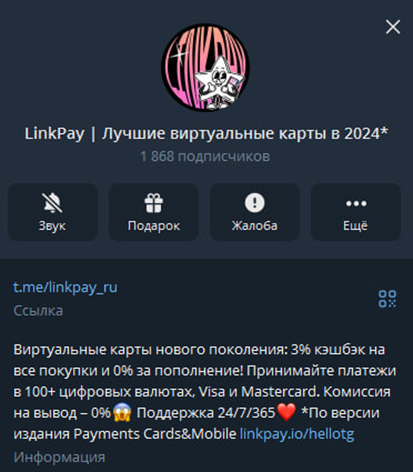 Вторым каналом является LinkPay Ru. Он создан тоже 2 года назад, но для русскоязычной аудитории. На момент обзора на него подписано 1 868 человек. Вовлеченность аудитории также составила 8%. Канал имеет резкие скачки в статистике подписок и отписок. Поэтому, можно сказать, что и в этом канале большая часть аудитории накручена. Оба блога используются как новостные. Посты в них одинаковые, лишь на разных языках.