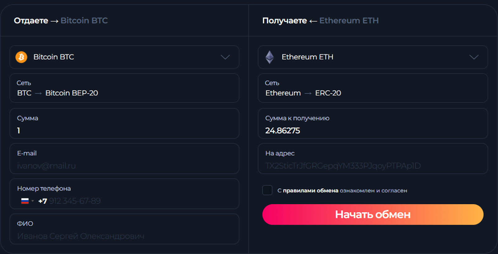 Общая информация и правила обмена