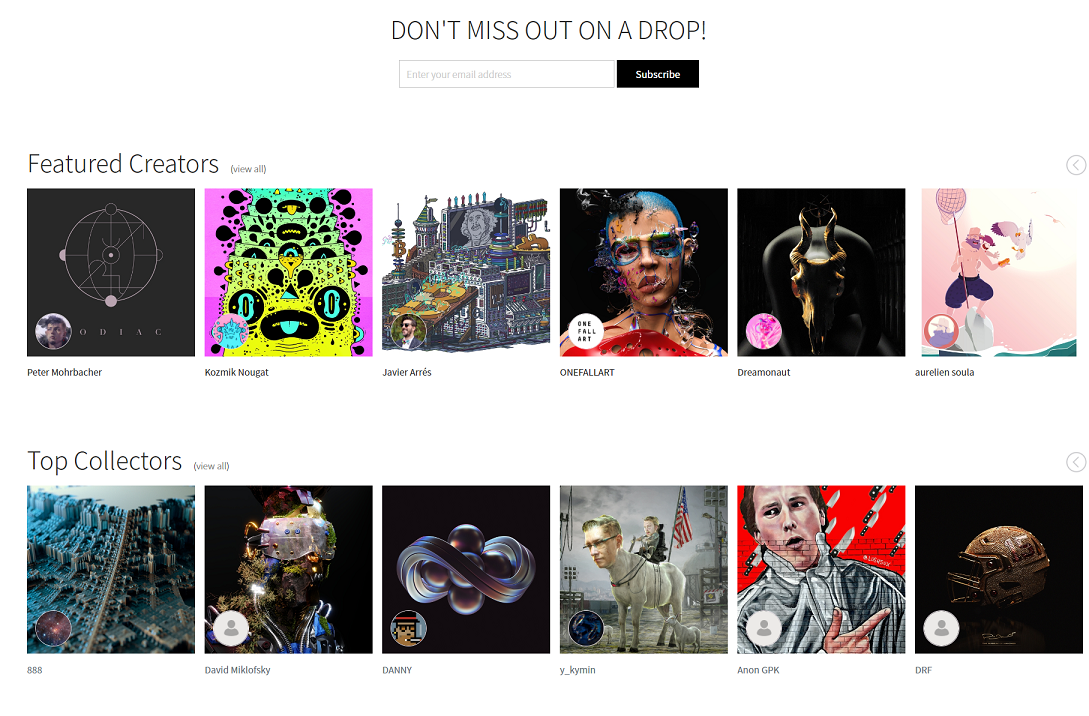 В 2019 году на платформе ввели покупки за фиат и кастодиальный кошелек для новичков. Термин «drop» появился в 2020 — когда и возникли первые видео и голограммы NFT. Активный рост маркетплейса пришелся на 2021 год, когда был бум рынка и прошел известный аукцион Beeple, на котором тот продал NFT на 60+ миллионов долларов.