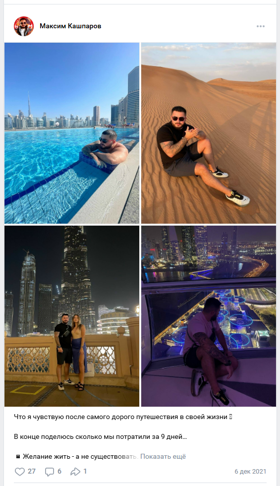В качестве приманки Кашпаров использует классические инфоцыганские приемы: демонстрирует роскошную жизнь и скрины банковских переводов якобы своих учеников, которые уже добились успеха. Также он активно записывает мотивационные ролики про финансовую независимость и призывает срочно уходить из офисной работы. При этом он не дает никакой конкретики — ни по инструментам, ни по рискам, ни по реальной стратегии заработка. Это особенно опасно для новичков, которые, поверив громким словам афериста, могут потерять стабильную оплачиваемую работу и остаться ни с чем.