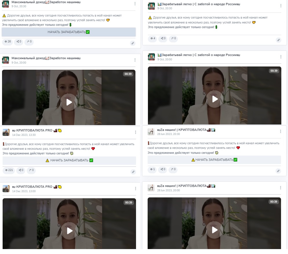 Канал Maksimalnyj Dohod не единственный ресурс, который ведет Наташа. Таких проектов у нее несколько, выход публикаций синхронизирован, они появляются одновременно во всех пабликах. Вот примеры каналов-клонов: