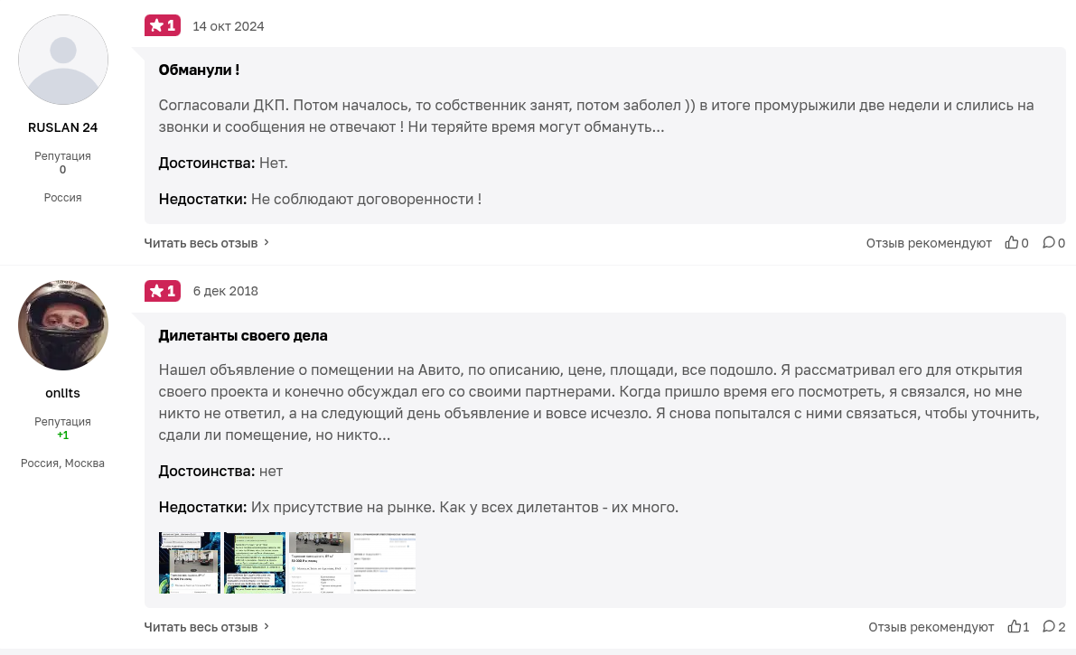 Такой шквал негатива заставляет задуматься: а стоит ли связываться с посредником, который не может наладить элементарный клиентский сервис? Ведь покупка коммерческой недвижимости – это не крипту на бирже флипнуть, здесь цена ошибки исчисляется миллионами рублей и годами судебных разбирательств.