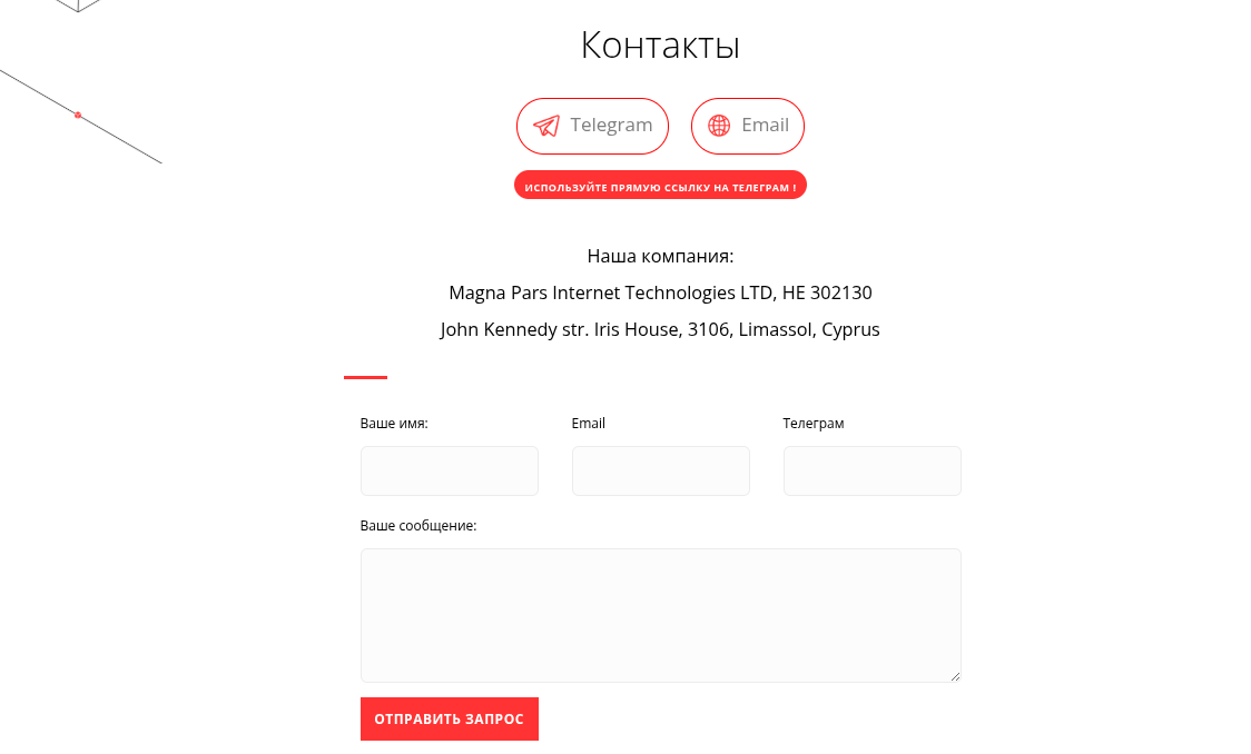 На сайте указана кипрская компания Magna Pars Internet Technologies LTD, хотя их адрес в Лимассоле – обычная виртуальная штаб-квартира для полулегальных контор. Реальных данных о владельцах немного, а связаться с поддержкой можно лишь по электронной почте или через Telegram (никнейм саппорта – @masspayteam). Подробнее об этом проекте вы узнаете из нашего обзора.