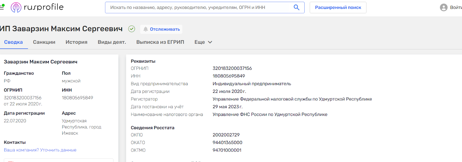Полное имя Макса Люшера — Максим Заварзин Сергеевич. Он рассказывает, что специализируется на ИИ, но как долго занимается фрилансом, не указывает. По его словам, с помощью собственных схем получает от 20 тыс. руб. в сутки. Документов, подтверждающих квалификацию, не размещает. Тем не менее Максим зарегистрирован как ИП, и на своем сайте оставляет номер документа.