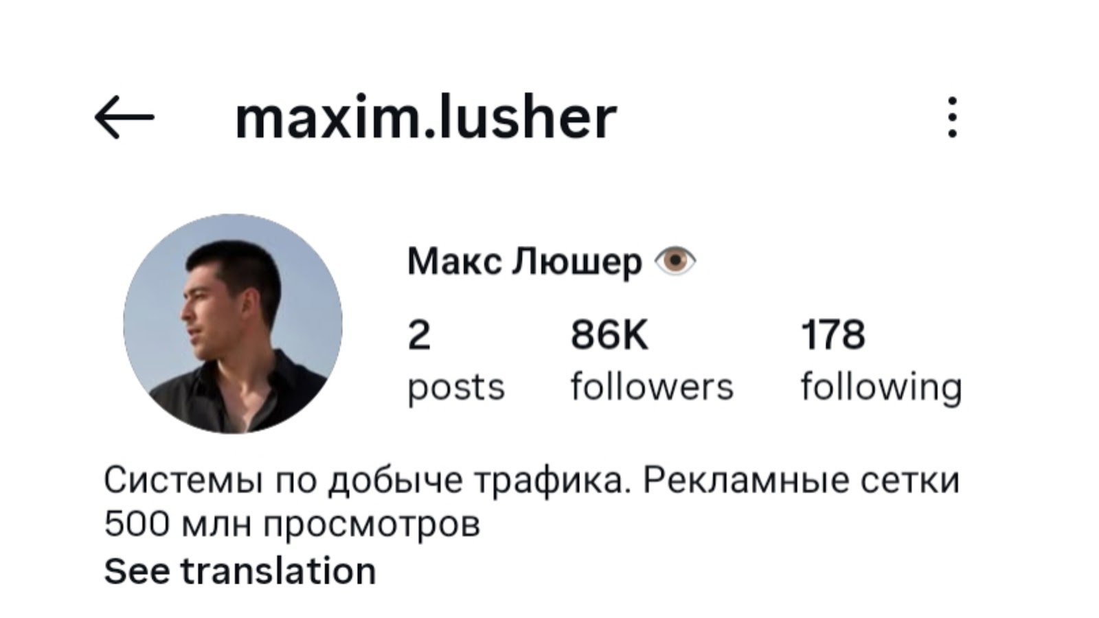 У Максима есть страница в Инстаграме Maxim Lusher, на которую подписано 86k юзеров.