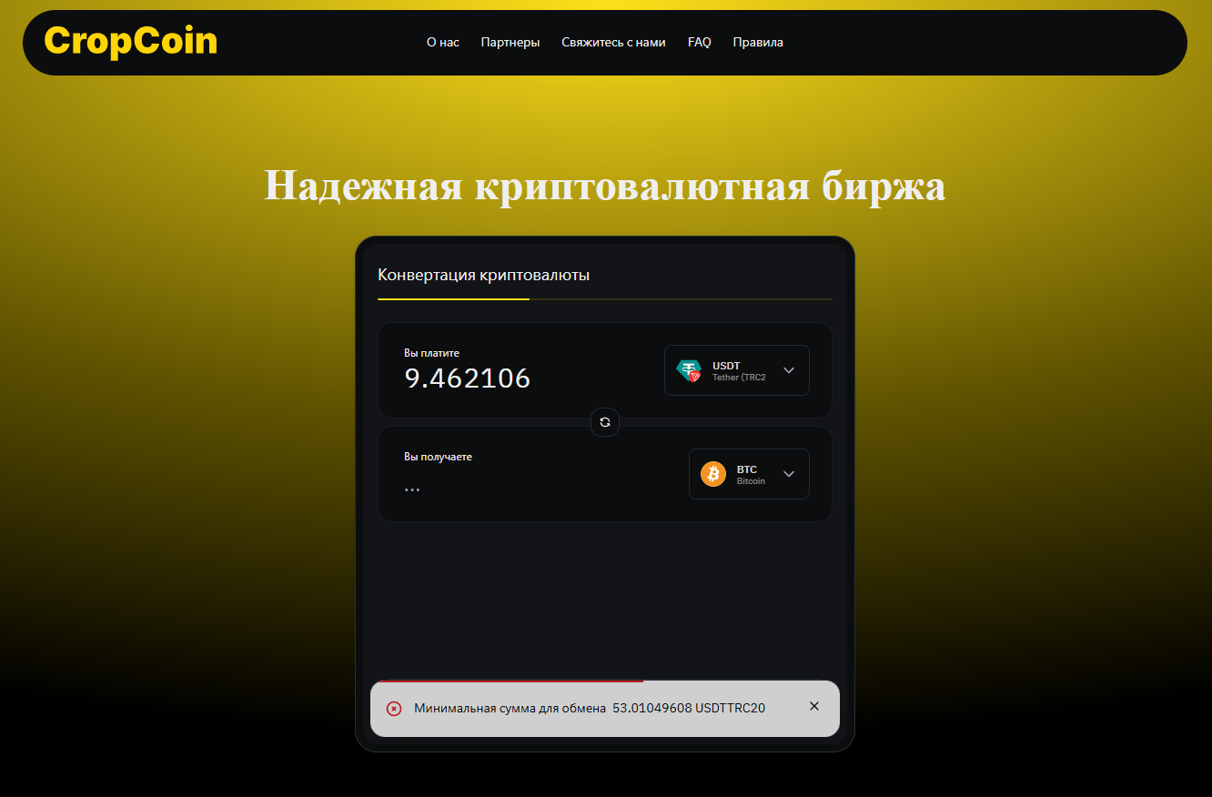 Домен Meetpay io зарегистрирован в июле 2024 года и имеет нулевую посещаемость. Это абсолютный клон таких площадок как Cropcoin и Kryptoswap, имеющих дурную славу. Главная страница обменника Kryptoswap выглядит так.