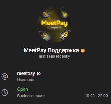 Обменник Meetpay io заявляет, что ведет свою деятельность уже 4 года и является одним из наиболее надежных сервисов в России. При этом сотрудничества с мониторингами нет, реквизиты конторы не указаны, никаких контактов для связи не предоставлено, кроме Телеграмм аккаунта поддержки.